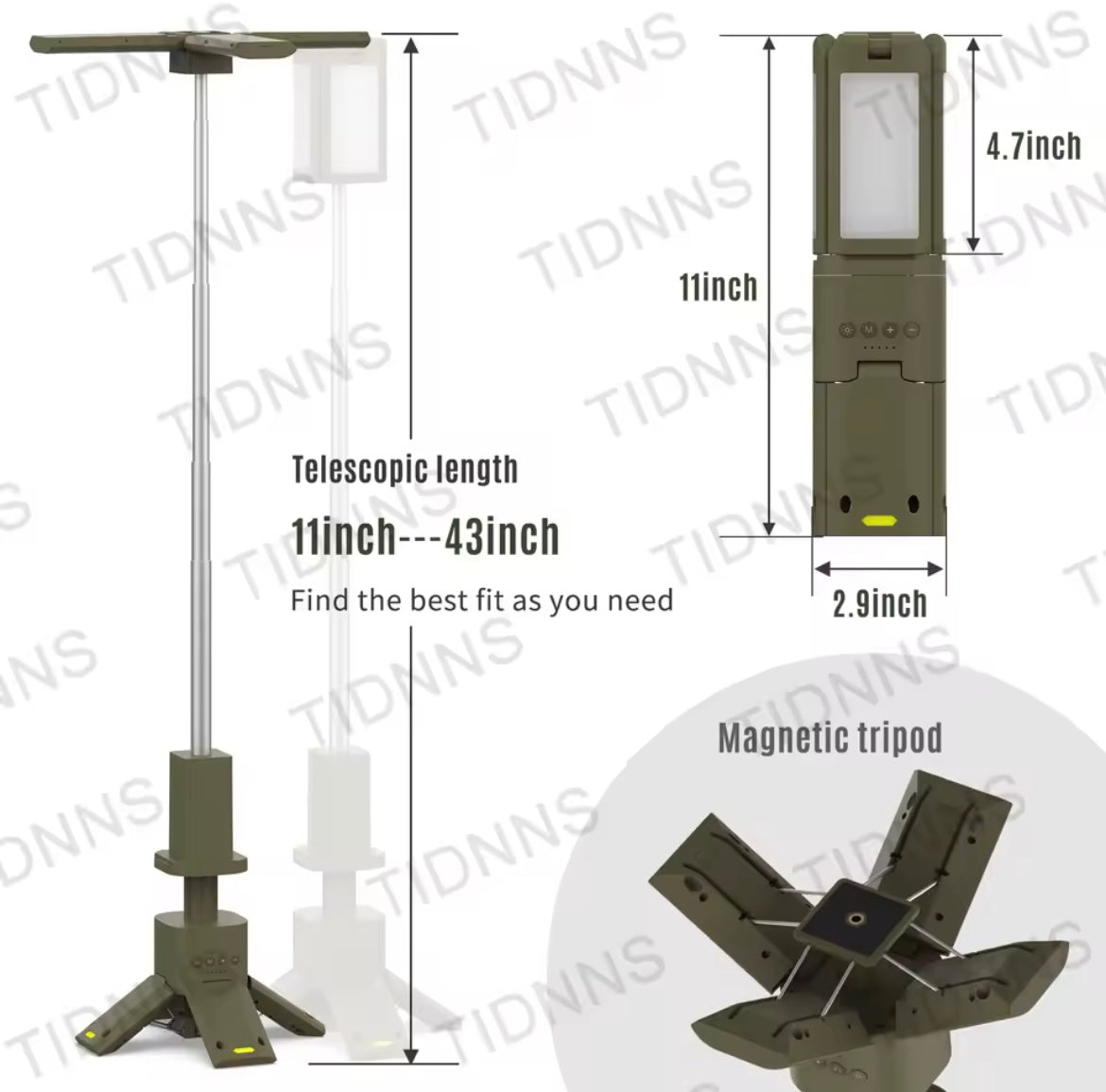 Compacte et portable, elle s’ouvre en quelques secondes pour devenir un puissant éclairage à haute luminosité 360°. Ajustable jusqu’à 110 cm, elle est parfaite pour le camping, la randonnée, les soirées en plein air ou comme lampe d’urgence à la maison.